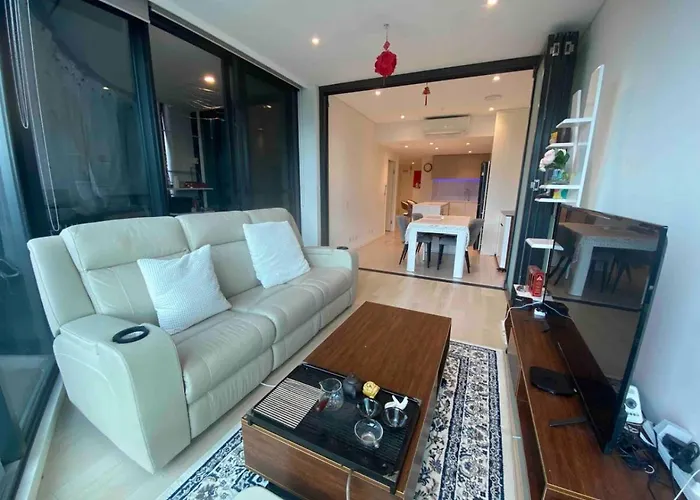 Millennium Parklands ist in ungefähr 10 Autominuten Entfernung von diesem 78 m² großen Apartment, während die Bushaltestelle Footbridge Bvd opp Marina Square 650 m von der Unterkunft ist. Bennelong Bridge ist in ca. 3 km Entfernung vom Apartment.